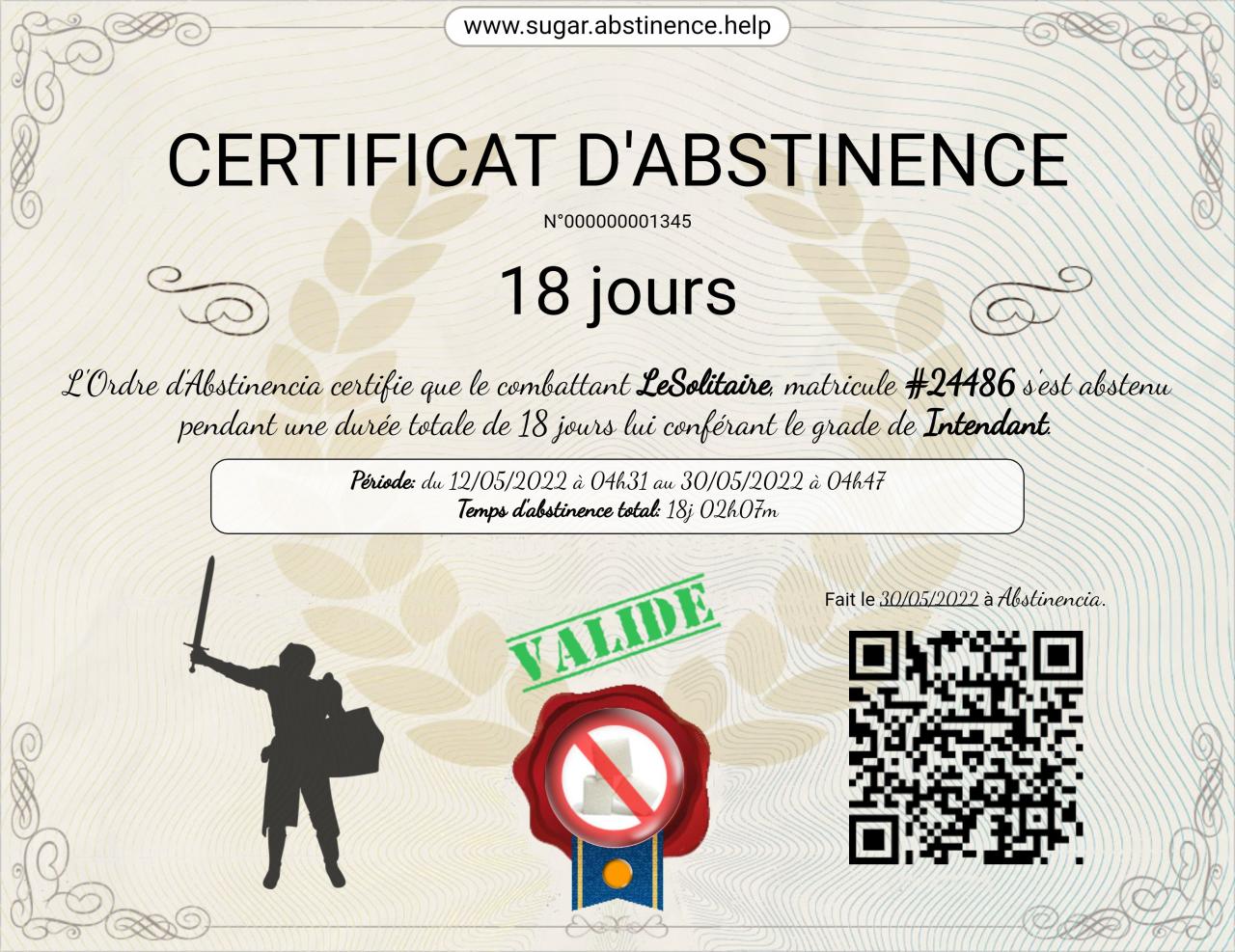 Abstinence débutée le 12/12/2025 à 07h35.Objectif fixé: 70 jours271 jours d'abstinence cumulés -